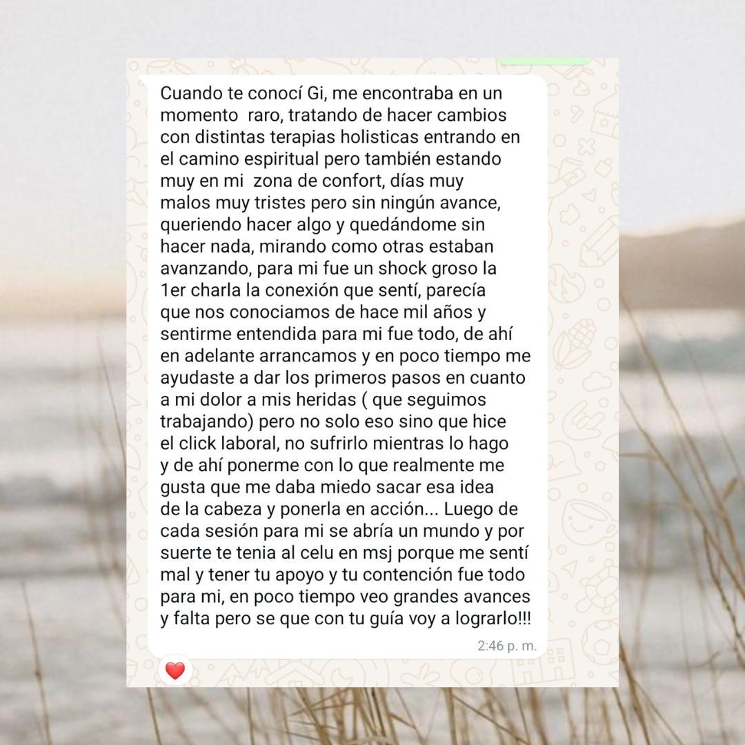 A través de estas sesiones vas a poder reconectarte con vos misma, ganar claridad para avanzar y desarrollar recursos que te ayuden a sostener tus procesos con mayor equilibrio y confianza.